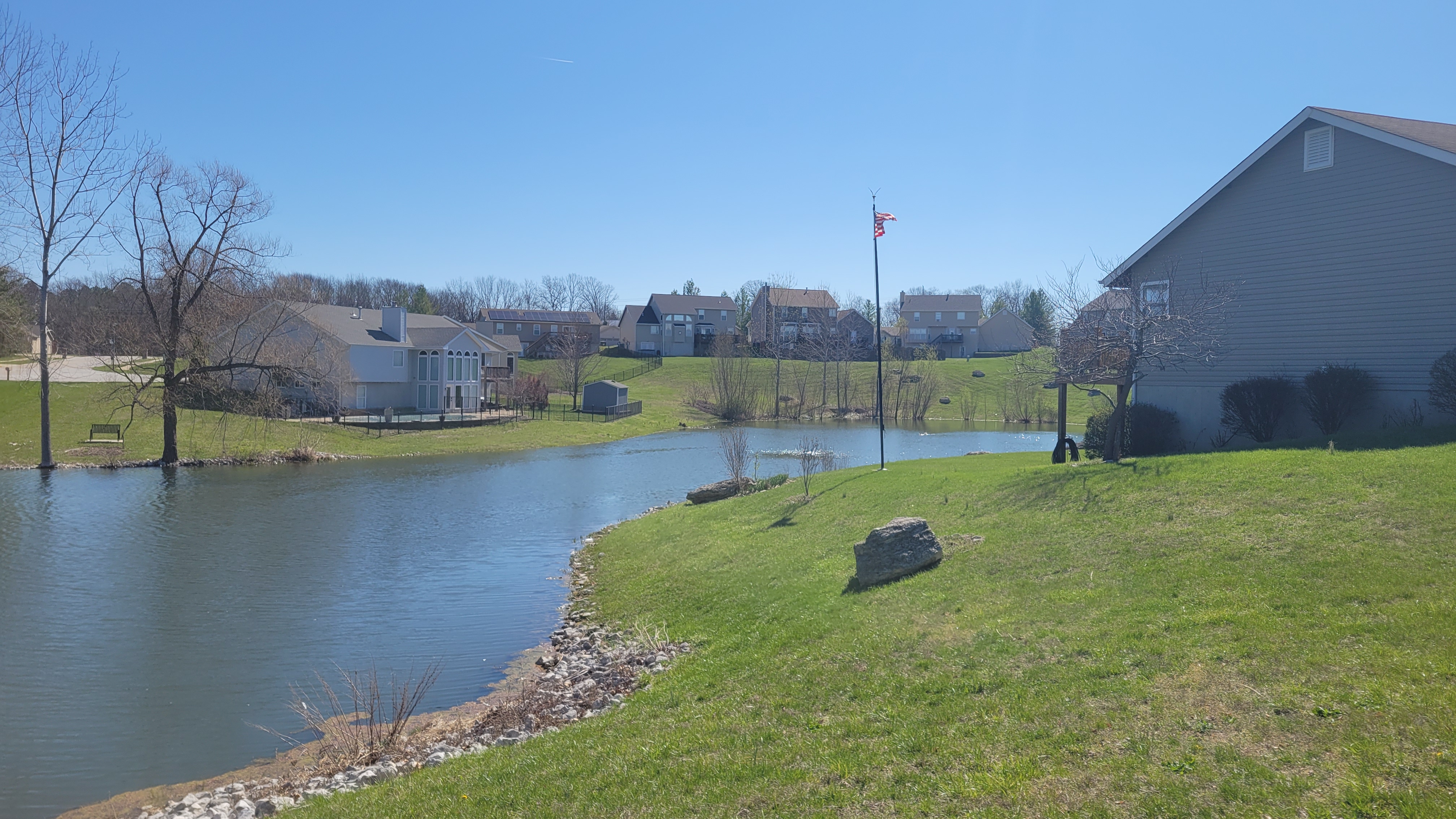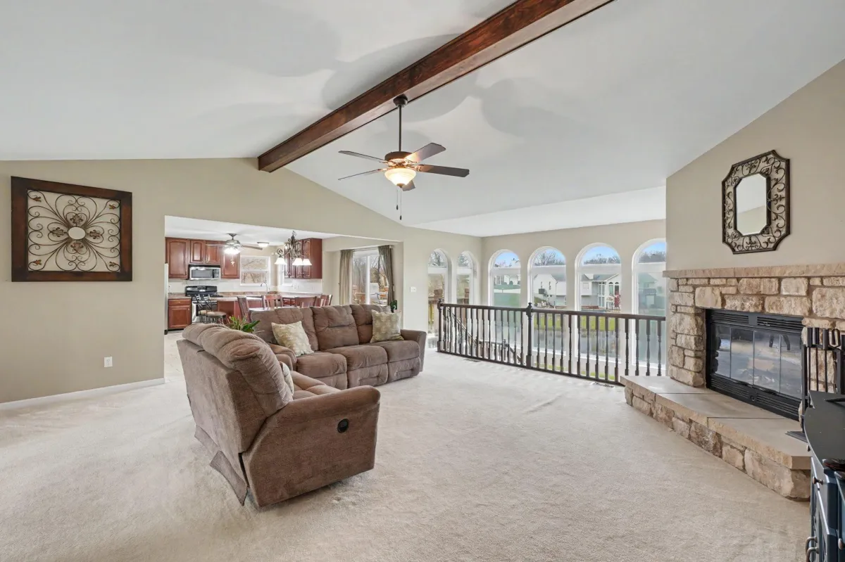 Tucked away in a quiet Wentzville setting within the sought-after North Point School District, this 4-bedroom, 3-bath atrium ranch offers a rare lakefront opportunity with space, privacy, and natural light. A wall of windows fills the open-concept living, dining, and kitchen areas with peaceful water views, while a cozy wood-burning fireplace adds warmth and charm.